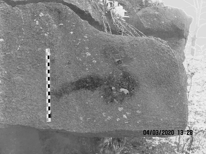DStretch image of the pictograph above the Chesterfield Valley Rock Shelter. Scale is 20 cm.