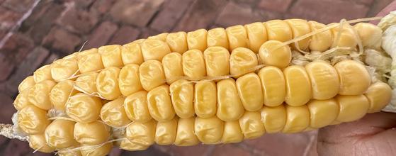 Yellow sweetcorn (Zea mays) - GRIN number Ames 22030 IA453. Average kernel weight = 0.1671 grams. Measurements of seeds (Length x Width x Thickness): 9.41 x 7.44 x 3.53, 9.20 x 7.03 x 5.00, 8.62 x 8.28 x 5.02, 9.19 x 7.05 x 3.57, 10.34 x 8.16 4.27, 9.77 x 8.15 x 3.41, 9.07 x 8.42 5.07, 10.28 x 7.36 x 3.51, 8.87 x 6.91 x 3.52, and 9.57 x 8.15 x 3.40.