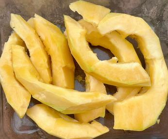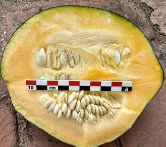 The Lakota pumpkin was easy to slice (compared Mandan squash). The meat is declicious raw as well as cooked. The one pumpkin contained 242 seeds that weighed 50.4 grams when dried.