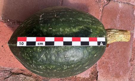Lakota pumpkin, 23 July 2025 (left) and 16 August 2025 (right) at time of harvest.