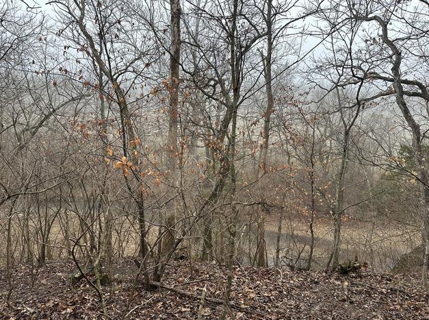 View from the Gray Day Site to the small tributary stream draining to the Mississippi River.