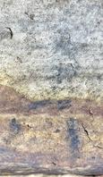 Abstract diagonal pictograph (Glyph ???) pXRF 126: Barium = 399.37 ppm +/- 41.8, Antimony = 56.51 ppm +/- 10.77, Tin = 31.38 ppm +/- 9.35, Cadmium = 15.41 ppm +/- 7.64, Silver = 13.57 ppm +/- 5.24, Zirconium = 38.87 ppm +/- 7.21, Strontium = 10.58 ppm +/- 2.3, and Iron = 2127.25 ppm +/- 73.22