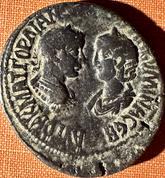 Singara, Gordian III and Tranquilline, AD 242 - 244; O. Facing Emperor/Empress. R. Tyche holding wheat